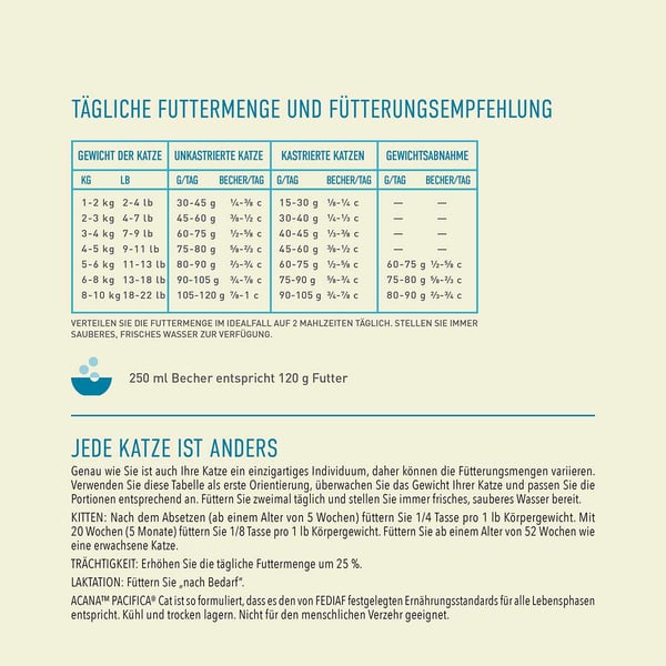 Kočky jsou anatomicky stavěné na potravu ze živočišných bílkovin. ACANA Pacifica je plná divokých sleďů, makrel, platýsů, štik a okouníků žijících ve volné přírodě v poměru celé kořisti z ryb, vnitřností a kostí a přirozeně tak poskytuje živiny, které vaše kočka potřebuje k podpoře optimálního zdraví – výživa jako z přírody.