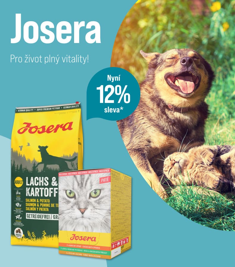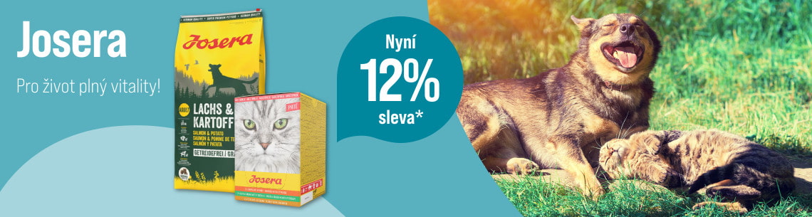 *Sleva 12 % na krmiva značky Josera s kódem 12-czjosera. Akce platí od 11.08.2025 do 05.10.2025 nebo do vyprodání zásob. U každé objednávky lze uplatnit pouze jeden kód.