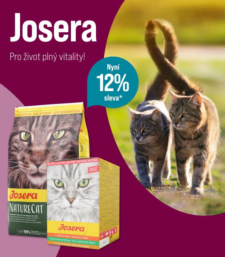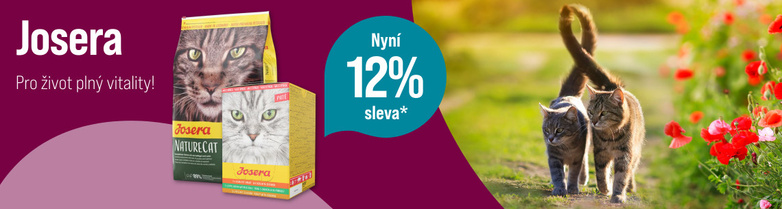 *Sleva 12 % na krmiva značky Josera s kódem 12-czjosera. Akce platí od 11.08.2025 do 05.10.2025 nebo do vyprodání zásob. U každé objednávky lze uplatnit pouze jeden kód.