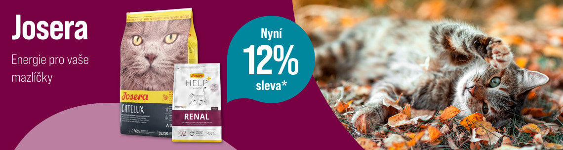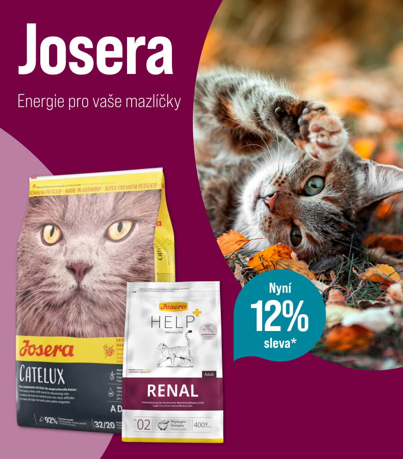 *Sleva 12 % na krmiva značky Josera s kódem 12-czjosera. Akce platí od 27.10.2025 do 21.12.2025 nebo do vyprodání zásob. U každé objednávky lze uplatnit pouze jeden kód.