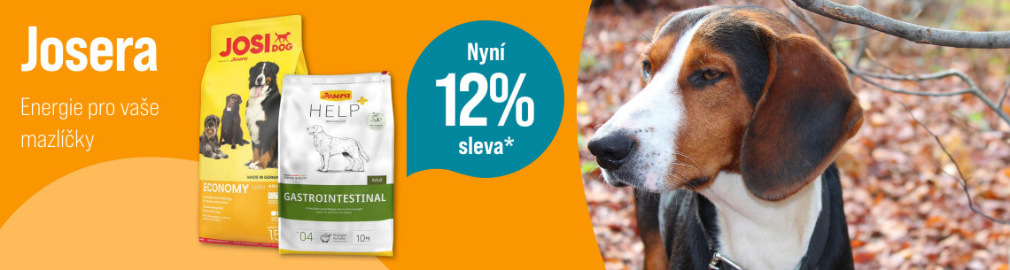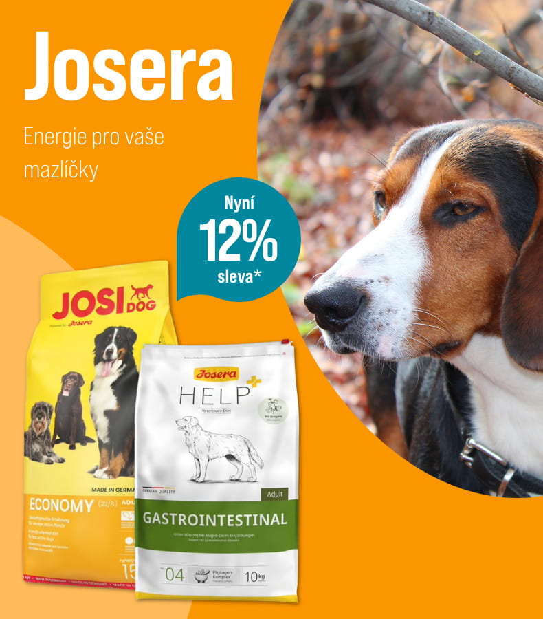 *Sleva 12 % na krmiva značky Josera s kódem czjosera12. Akce platí od 27.10.2025 do 21.12.2025 nebo do vyprodání zásob. U každé objednávky lze uplatnit pouze jeden kód.