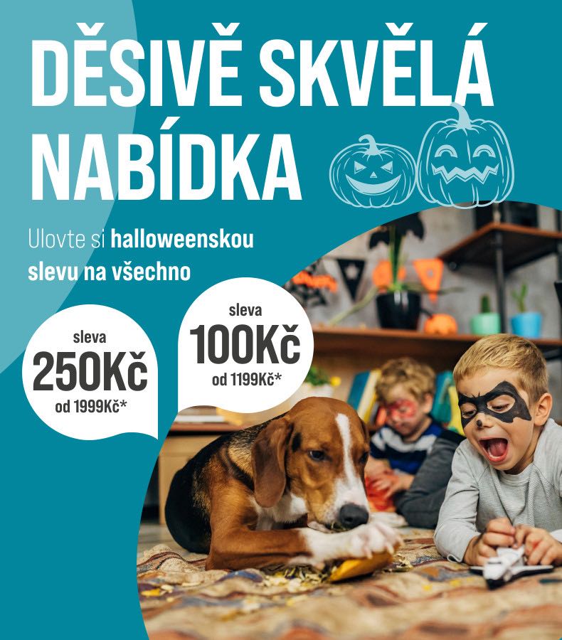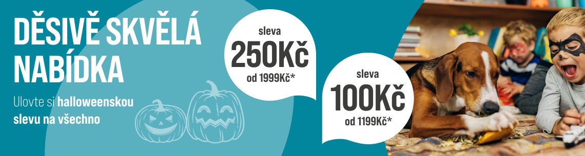 *Sleva 100 Kč od 1199 Kč s kódem "HalloweenS" a sleva 250 Kč od 1999 Kč s kódem "HalloweenL" na celý sortiment. Akce platí od 28.10.2024 do 03.11.2024 nebo do vyprodání zásob; neplatí na produkty značky ja! a na veterinární produkty. U každé objednávky lze uplatnit pouze jeden kód.