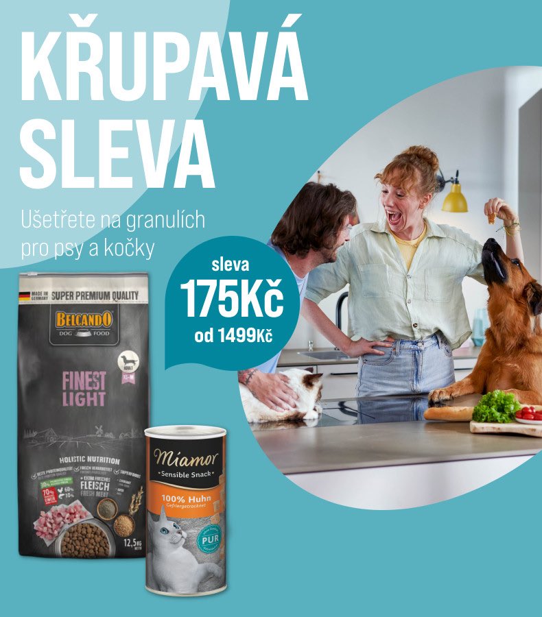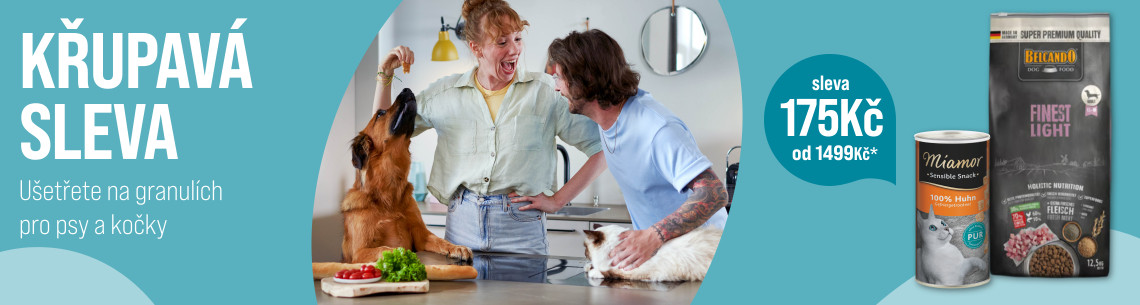*Sleva 175 Kč od 1499 Kč s kódem chutny175, akce platí na granule pro psy, pamlsky pro psy, granule pro kočky, pamlsky pro kočky, od 02.12.2024 do 12.01.2025 nebo do vyprodání zásob. U každé objednávky lze uplatnit pouze jeden kód.