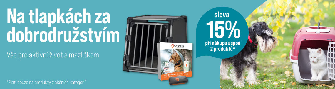 *Sleva 15 % při nákupu alespoň dvou produktů s kódem venku15, akce platí na kategorie vodítka pro psy, hračky pro psy, transport pro psy, výcvik psa, oblečky pro psy, obojky pro kočky, hračky pro kočky, transport pro kočky a smart potřeby pro kočky od 12.01.2026 do 08.02.2026 nebo do vyprodání zásob. U každé objednávky lze uplatnit pouze jeden kód.