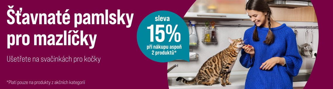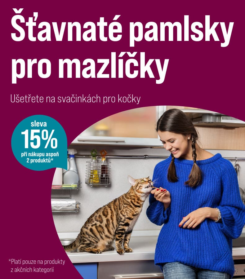 *Sleva 15 % na pamlsky pro kočky s kódem 15-chutne při koupi alespoň dvou balení pamlsků. Akce platí od 16.02.2026 do 29.03.2026 nebo do vyprodání zásob. U každé objednávky lze uplatnit pouze jeden kód.