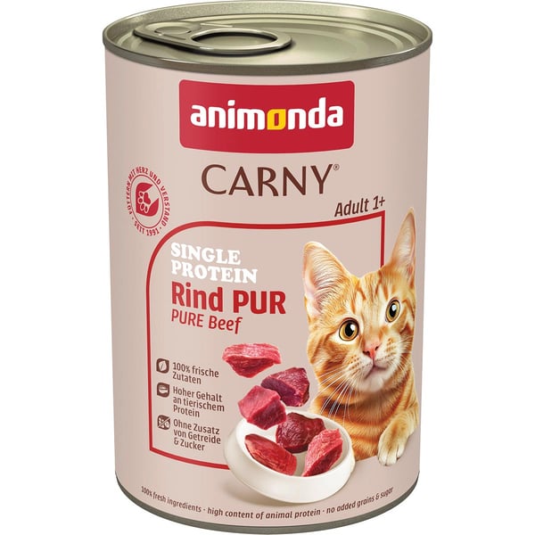 Carny® Single Protein pro vyváženou stravu – Pouze jeden zdroj živočišných bílkovin – Určeno pro dospělé kočky ve věku 1 – 6 let. Čerstvé masité přísady jsou rychle a šetrně zpracovány, aby zůstaly zachovány všechny důležité živiny. Řepkový olej je přírodní zdroj omega-3 mastných kyselin. Krmivo Carny Single Protein je vyrobeno v Německu bez přídavku obilovin, sóji, cukru, zvýrazňovačů chuti, barviv a konzervačních látek. Dodává dospělé kočce všechny životně důležité živiny.