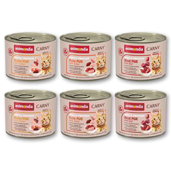 Carny® Single Protein pro vyváženou stravu – Pouze jeden zdroj živočišných bílkovin – Určeno pro dospělé kočky ve věku 1 – 6 let. Čerstvé masité přísady jsou rychle a šetrně zpracovány, aby zůstaly zachovány všechny důležité živiny. Řepkový olej je přírodní zdroj omega-3 mastných kyselin. Krmivo Carny Single Protein je vyrobeno v Německu bez přídavku obilovin, sóji, cukru, zvýrazňovačů chuti, barviv a konzervačních látek. Dodává dospělé kočce všechny životně důležité živiny.
