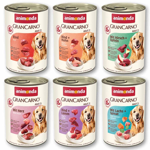 Psi se nenechají zmást, pokud jde o kvalitu, a maso milují. Proto je krmivo v konzervě GranCarno vyrobeno výhradně z čerstvých masitých surovin, jako jsou srdce, plíce, maso a játra. GranCarno, doplněné o nezbytné minerály a vitamíny, je přirozeně druhově vhodné krmivo pro vašeho psa. Čerstvé masité přísady jsou rychle a šetrně zpracovány, aby zůstaly zachovány všechny důležité živiny. Přirozené, nefalšované a s typickou masovou chutí, kterou psi tolik milují. U GranCarno je deklarace otevřená a upřímná – stejně jako výrobek sám: obsahuje podrobné informace o všech použitých živočišných složkách (např. hovězí svalovina, hovězí srdce). Víte přesně, co se v misce nachází.