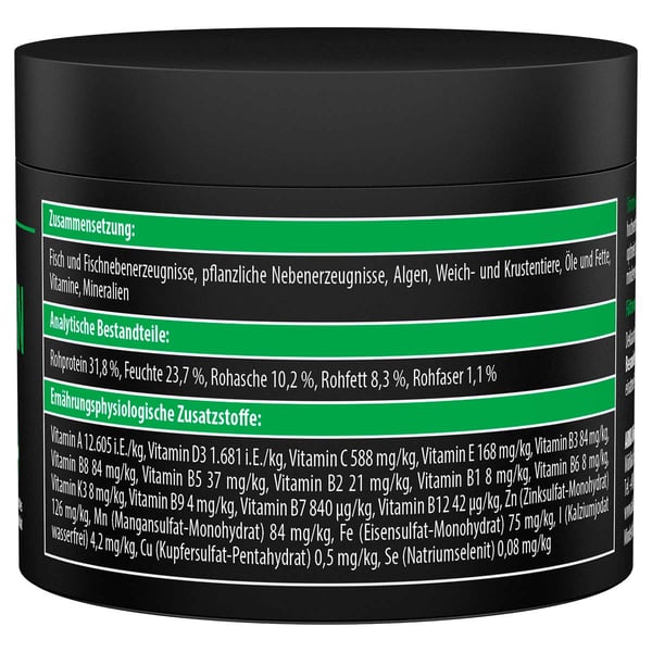 Analytické složky:Hrubý protein 31,8 %, vlhkost 23,7 %, hrubý popel 10,2 %, hrubý tuk 8,3 %, hrubá vláknina 1,1 %