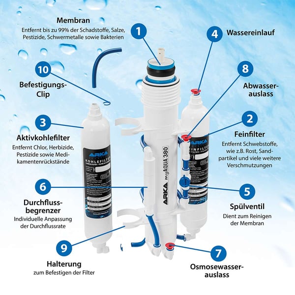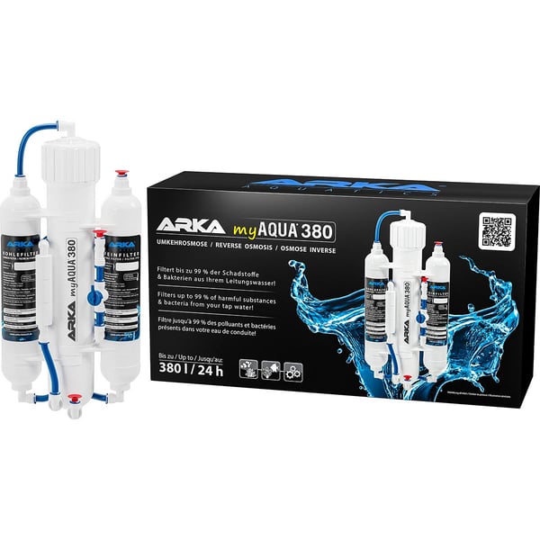 S ARKA myAqua 380 reverzní osmózou získáte uživatelsky přívětivé řešení pro úpravu vody ve vašem akváriu. Jednotka je snadno ovladatelná a rychle instalovatelná, takže můžete okamžitě začít s úpravou vody. Díky vysoké kapacitě až 380 litrů za den je ideální pro akvária jakékoliv velikosti a poskytuje vám stálý přísun kvalitní osmotické vody.