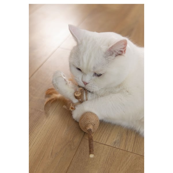 Vybaveno peřím, jutovými provázky a zvonečkem, nabízí Juto Ball rozmanité herní variace. Tyto prvky stimulují smysly vaší kočky a zajišťují hodiny zábavy. Integrovaný zvoneček a písečná chrastítka při pohybu vytvářejí vzrušující zvuky, které hru ještě více oživují.