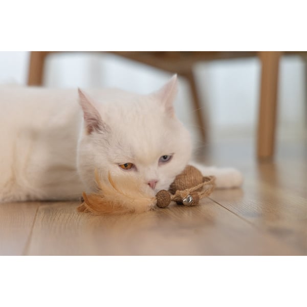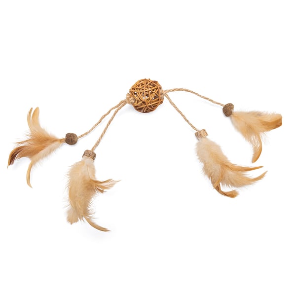 Ratanový míček s jutovými provazy, matatabi, catnip a peříčky