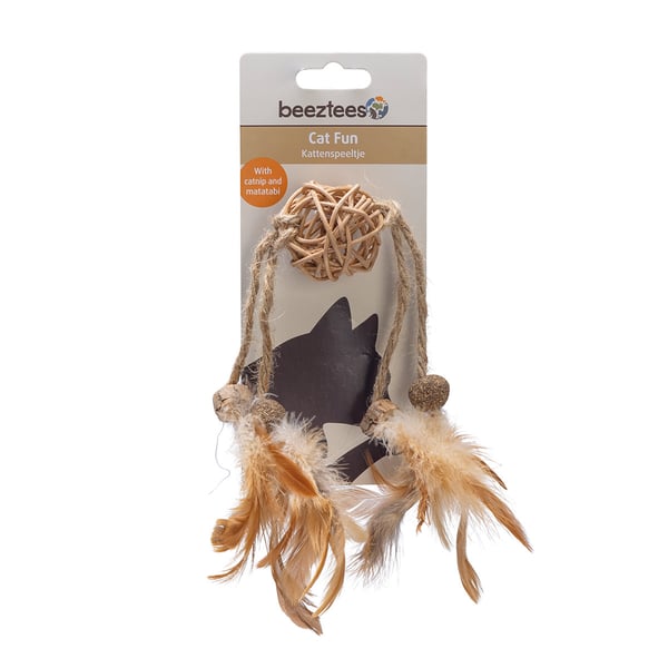 Beeztees hrací míček Tipy přináší rozmanitost a radost do každodenního života vaší kočky. Vyrobený z ratanového míčku a doplněný jutovými provazy, pery a bloky Matatabi, nabízí tato hračka pro kočky širokou škálu herních možností. Kombinace přírodních materiálů a vzrušujících prvků oslovuje lovecký instinkt vaší kočky a zajišťuje hodiny zábavy.