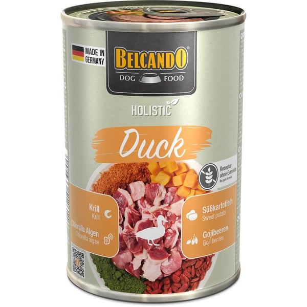 Belcando Holistic Duck nabízí výživné jídlo s aromatickou kachnou a vrstvou superpotravin. Tato kombinace zajišťuje vyváženou stravu, která vašeho psa zásobuje důležitými živinami. Díky absenci obilovin a umělých přísad je krmivo obzvláště přírodní a šetrné pro vašeho psa.