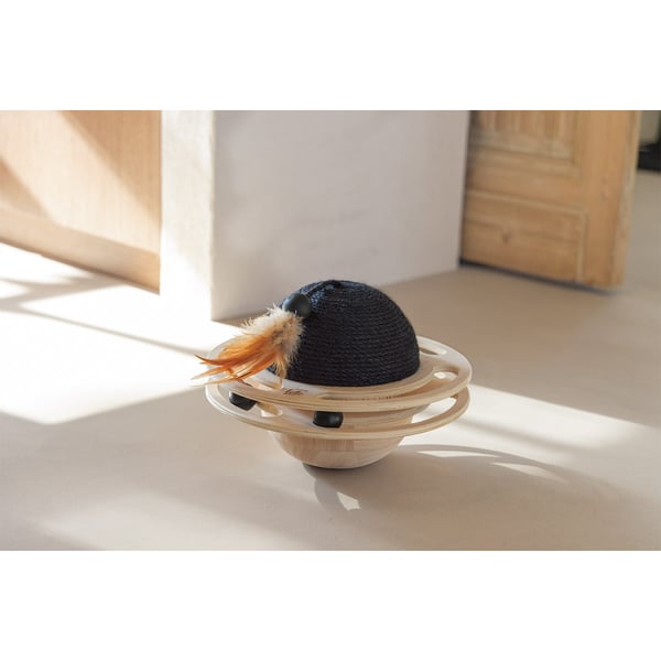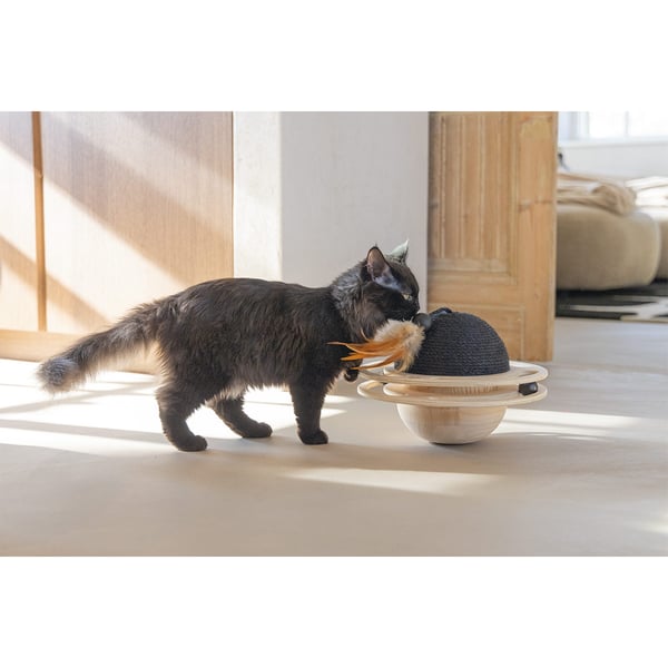 Hrací míček Baya je více než jen jednoduchá hračka. Obvodový dřevěný rám s integrovanými hracími míčky probouzí lovecký instinkt vaší kočky, protože míčky se kutálejí, jakmile jsou postrčeny. Další lano s míčkem a peřím povzbuzuje ke hře a zajišťuje rozmanitou zábavu. Tak zůstane vaše kočka aktivní a zabavená.
