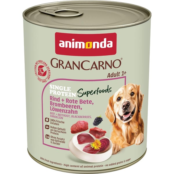 GranCarno® Superfoods představuje vyváženou, chutnou a zdravou stravu – S přírodními superpotravinami a jedním zdrojem živočišných bílkovin – Určeno pro dospělé psy ve věku 1 - 6 let. Superpotraviny doplňují živiny, jako např. sekundární rostlinné látky, antioxidanty, minerální látky nebo stopové prvky a podporují dobrou kondici psa. Vybrané čerstvé masité suroviny zaručí nesrovnatelnou chuť, kterou psi ocení.
