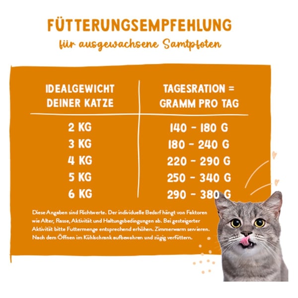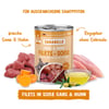 Menu pro labužníky je vyrobeno bez obilovin a obohaceno o vybranou zeleninu. Obsahuje kromě čerstvé husy (5 %) také čerstvé kuřecí maso (47 %), hodnotné čerstvé vnitřnosti (15 %, z toho 3 % čerstvá játra). Mrkvičky dodají vaší kočce hodnotné uhlohydráty a vitamíny, extra porce olivového oleje zase nenasycené mastné kyseliny pro zdravou kůži a srst.