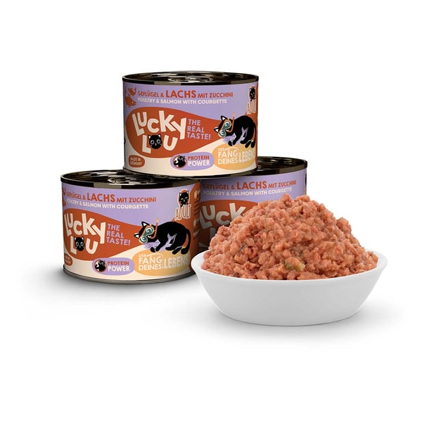 Nudné monotónní krmivo najdete jinde – Lucky Lou Lifestage je k dostání v 18 různých příchutích. Abyste mohli svým kočkám servírovat vždy čerstvé krmivo, je Lucky Lou Lifestage k dispozici v kapsičkách o obsahu 125 g a také v konzervách 200 g a 400 g. A samozřejmě jsou k dispozici i multipacky!