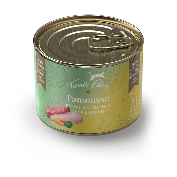 Všechna Terra Felis menü jsou proto doplněna o vybranou zeleninu a kočičí mátu. Jídla jsou doplněna o přídavek taurinu a řepkového oleje, který je bohatý na omega-3 mastné kyseliny. Používají se výhradně suroviny ve 100 % kvalitě potravin. Tato kvalita se odráží v lahodné a jemné vůni menü a vede k dobré akceptaci.