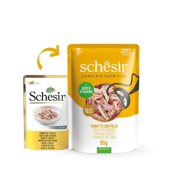 Schesir Cat tuňák s kuřetem v želé používá výhradně 100% přírodní ingredience, aby vaší kočce poskytl kvalitní jídlo bez umělých barviv nebo konzervačních látek. Dušené filety z tuňáka jsou pečlivě zpracovány ručně, aby byla zachována přírodní kvalita a chuť.
