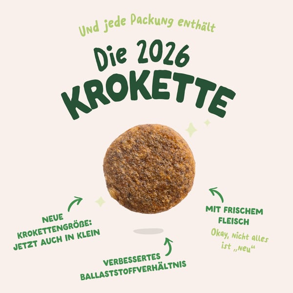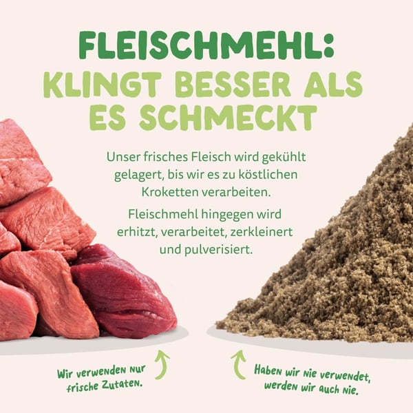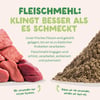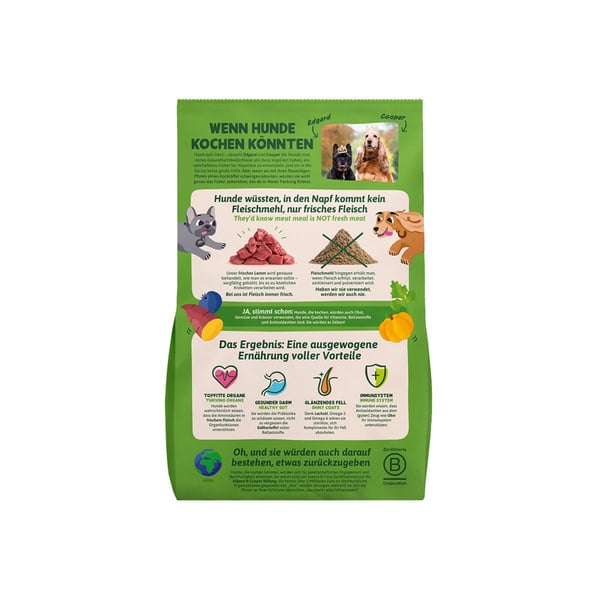 Tato receptura bez obilovin s jehněčím masem z pastvin je bohatá na kvalitní bílkoviny a esenciální aminokyseliny (bez dehydrovaného masa). Toto krmivo je hypoalergenní (takže ideální pro citlivé žaludky) a obsahuje prebiotika pro zdravé střevo. Naše granule připravujeme se super zdravou směsí z ovoce a zeleniny a s extra porcí bylin. Ta je poté šetrně tepelně opracovaná způsobem, který zachovává vše prospěšné i chuť. Vyrobeno v Německu.