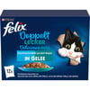 FELIX® Doppelt Lecker je výběr neodolatelných pokrmů, která vypadají, voní a chutnají tak, jako byste je sami připravili. Každá varianta krmiva, vyrobená z kvalitních přísad, se skládá z jemných kousků, které v želé kombinují dva různé druhy příchutí, takže váš pes může ochutnat dvě ze svých oblíbených chutí v jedné lahodné porci! Skutečně chutná dvojnásob lahodně! FELIX – prostě neodolatelné!