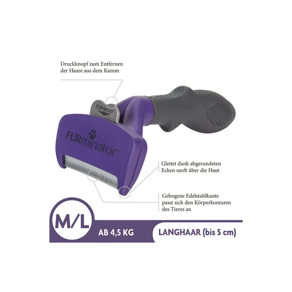 | Gewicht: | Länge des Fells: | Häufig vorkommende Rassen: | Größe FURminator: |