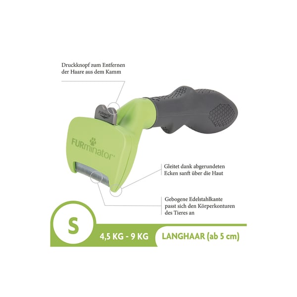 | Gewicht: | Länge des Fells: | Häufig vorkommende Rassen: | Größe FURminator: |