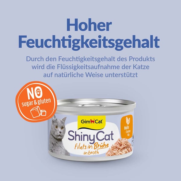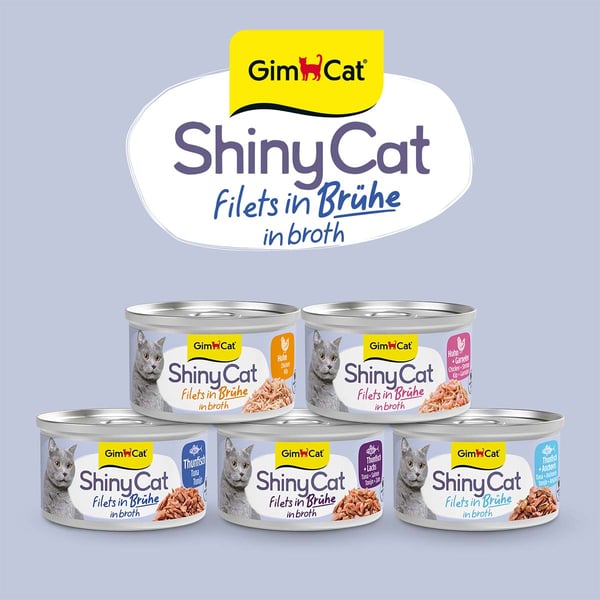 GimCat Shiny filé je krmivo pro kočky bohaté na bílkoviny, které bylo vařeno ve vývaru a doplněno o rýži. Krmivo bylo vyrobeno bez přídatných látek.
