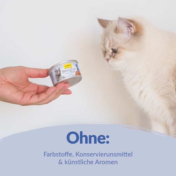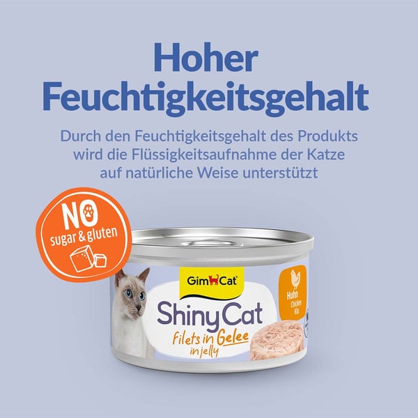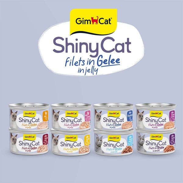 Na bílkoviny bohaté varianty GimCat ShinyCat v želé jsou nabízené s obzvláště chutnými kousky v lahodném želé, které jsou zvláště šťavnaté a jemné. Bohatství bílkovin je zaručeno díky mnoha druhům, díky tomu zabezpečí a posílí zdraví a imunitní systém vaší kočky. Vysoké kvality je dosaženo díky výběru přísad. Nedovolte, aby si vaše kočka nechala tuto kvalitu uniknout a přesvědčte ji touto mimořádnou chutí. Díky malému podílu tuku 1 % vhodné i pro kočky s nadváhou.