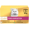 GOURMET Gold Feine Komposition v multipacku po 4 ks nenechává žádná přání nesplněná: Tyto vybrané kousky a proužky jsou k dostání ve čtyřech nesrovnatelných příchutích. Přesvědčí i toho nejnáročnějšího mazlíčka. Neodolatelná menu pro každý den: Hovězí a kuřecí, Kachna a krocan, Mořská ryba v omáčce se špenátem (exkluzivně jen v multipacku), Králík a játra (exkluzivně jen v multipacku).