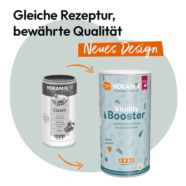 Grau Hokamix30 prášek je vysoce účinný doplněk stravy pro doma připravovanou stravu (např. BARF stravu se syrovým masem). Pomáhá předcházet projevům nedostatku a zajišťuje podporu všem orgánovým systémům, výkonnému pohybovému aparátu a nádherné srsti.
