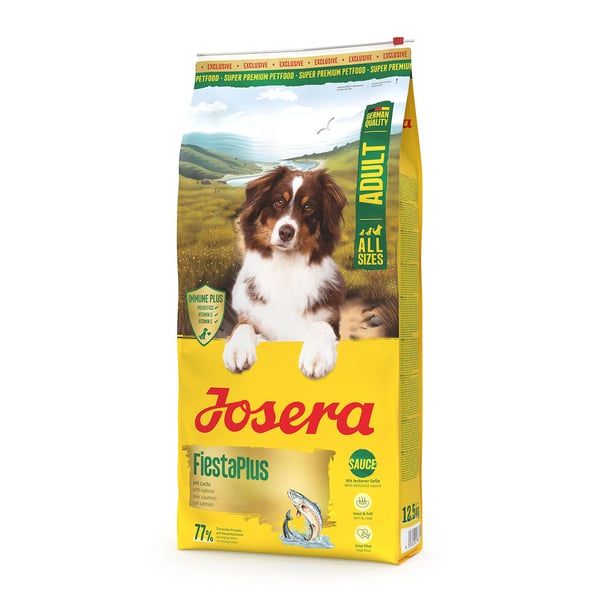 Oslavte vitalitu našich čtyřnohých přátel: Josera FiestaPlus pro dospělé psy zajišťuje nejen díky dvoubarevným kroketám rozmanitost v misce. Červené Vital Booster Chips dospělého krmiva pro psy nabízejí díky cenným vitamínům, taurinu a L-karnitinu další posílení vitality našich čtyřnohých přátel. Chuť lososa činí bezlepkové krmivo pro psy ještě chutnějším pro naše čtyřnohé přátele. Vylepšená receptura obsahuje navíc více lososového proteinu než dříve.