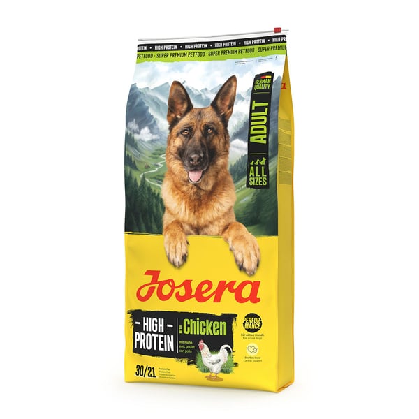 Proteinové, energetické, dobře stravitelné a chutné – to je naše Josera High Protein Chicken! Bezlepkové krmivo pro psy bylo speciálně navrženo pro velmi aktivní čtyřnožce a obsahuje vysoký podíl cenných bílkovin. Je ideální pro všechny, kteří jsou aktivní v psím sportu nebo jsou využíváni jako pracovní nebo chovní psi a denně podávají vysoký výkon.