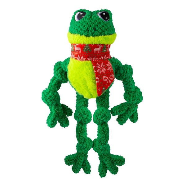 Po herní zábavě nabízí KONG Holiday hračka pro psy Knots žába se svým měkkým, dvojitým plyšovým kožichem útulnou možnost pro odpočinkové fáze. Originální detaily, jako jsou roztomilé žabí prsty a vyšívané obličejové rysy, z něj dělají zvláštního herního kamaráda.