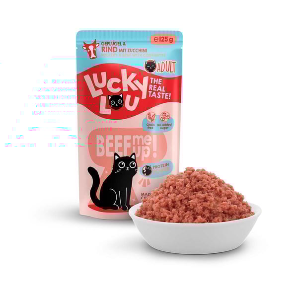 Tak vidíte: Moje krmivo je speciálně přizpůsobeno našim různým životním etapám a individuálním potřebám. Nudné monotónní krmivo najdete jinde – Lucky Lou Lifestage je k dostání v 18 různých příchutích. Abyste mohli svým kočkám servírovat vždy čerstvé krmivo, je Lucky Lou Lifestage k dispozici v kapsičkách o obsahu 125 g a také v konzervách 200 g a 400 g. A samozřejmě jsou k dispozici i multipacky!