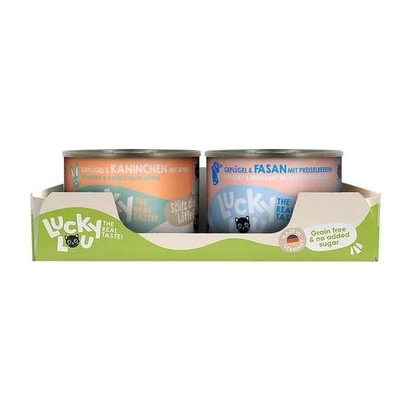 Nudné monotónní krmivo najdete jinde – Lucky Lou Lifestage je k dostání v 18 různých příchutích. Abyste mohli svým kočkám servírovat vždy čerstvé krmivo, je Lucky Lou Lifestage k dispozici v kapsičkách o obsahu 125 g a také v konzervách 200 g a 400 g. A samozřejmě jsou k dispozici i multipacky!