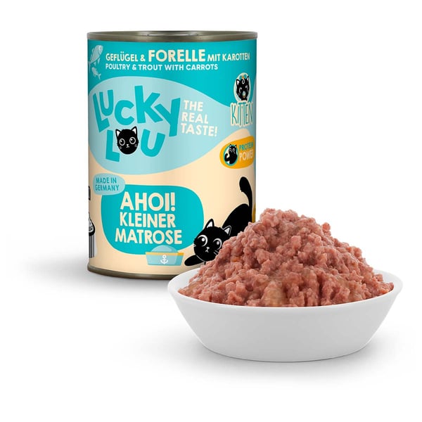 Nudné monotónní krmivo najdete jinde – Lucky Lou Lifestage je k dostání v 18 různých příchutích. Abyste mohli svým kočkám servírovat vždy čerstvé krmivo, je Lucky Lou Lifestage k dispozici v kapsičkách o obsahu 125 g a také v konzervách 200 g a 400 g. A samozřejmě jsou k dispozici i multipacky!