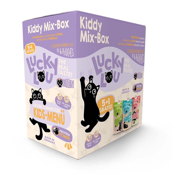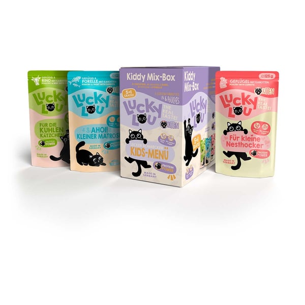 Nudné monotónní krmivo najdete jinde – Lucky Lou Lifestage je k dostání v 18 různých příchutích. Abyste mohli svým kočkám servírovat vždy čerstvé krmivo, je Lucky Lou Lifestage k dispozici v kapsičkách o obsahu 125 g a také v konzervách 200 g a 400 g. A samozřejmě jsou k dispozici i multipacky!