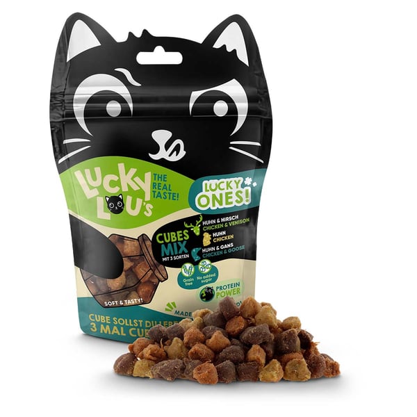 Chcete udržet kočky v dobré náladě? Nejlepší nápad! Mým nejnovějším geniálním tahem jsou Lucky Ones, totiž malé, super skvělé pamlsky s extra zábavným faktorem! Samozřejmě vyvinuto v obvyklé špičkové kvalitě vhodné pro kočky a s nejlepší chutí na světě.