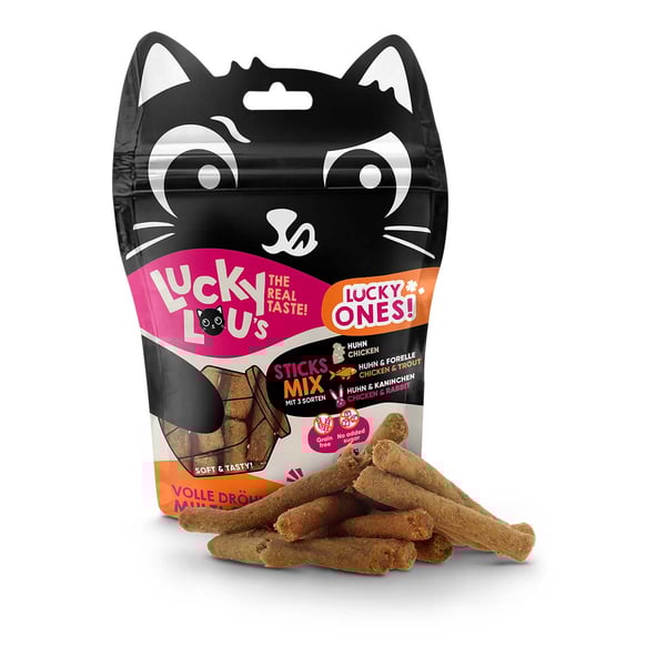 Chcete udržet kočky v dobré náladě? Nejlepší nápad! Mým nejnovějším geniálním tahem jsou Lucky Ones, totiž malé, super skvělé pamlsky s extra zábavným faktorem! Samozřejmě vyvinuto v obvyklé špičkové kvalitě vhodné pro kočky a s nejlepší chutí na světě.
