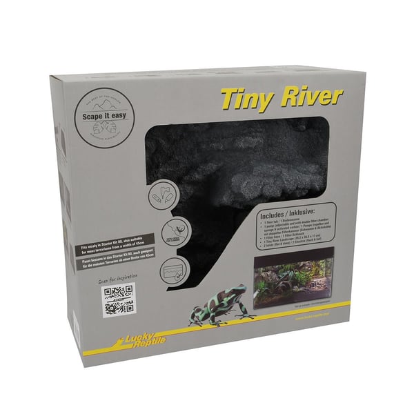 Lucky Reptile Tiny River přichází jako součást série Scape it easy a nabízí promyšlené řešení pro teraristy. Součástí balení je čerpadlo, které spolu s integrovaným filtrem a hadicí zajišťuje rovnoměrný tok vody. Tak vytvoříte bez velkého úsilí živé, přírodní prostředí pro vaše zvířata.