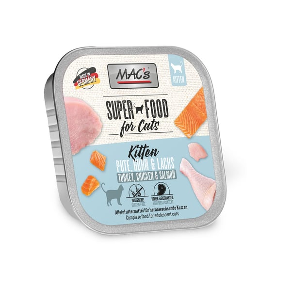 S krmivem MAC's dostane vaše kočka to, co má nejraději – maso. Díky důslednému vyloučení umělých přísad a orientaci na přirozenou stravu, jako je základní potřeba taurinu, představuje krmivo Mac's zdravou a vyváženou stravu pro vaši kočku.