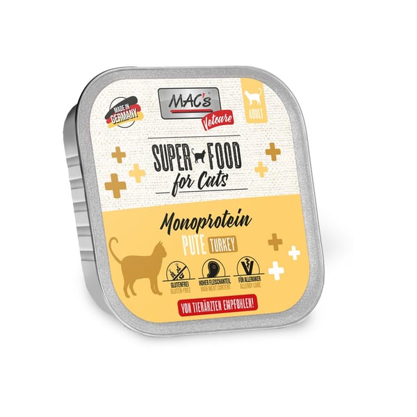 MAC's Cat Vetcare Mono pro dospělé kočky s krůtím masem je základní krmivo s jediným zdrojem bílkovin při eliminační dietě a nesnášenlivosti potravin.