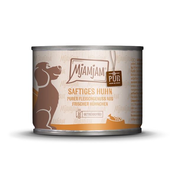 MjAMjAM čistý masový požitek - čisté kuře je bohaté na důležité vitamíny a minerální látky, které přispívají k optimálnímu zásobení vašeho psa. Bezobilné složení činí toto krmivo obzvláště dobře snášeným a je vhodné i pro psy s citlivou výživou. Dejte svému psovi možnost užít si přirozené a plnohodnotné jídlo.