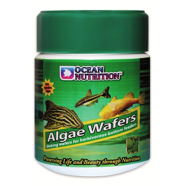 Ocean Nutrition Algae Wafers dodávají vašim rybám esenciální vitamíny, minerály a proteiny. Algen tablety/Algae wafers pro rybníky a akvária jsou velmi chutné, snadno stravitelné a potápivé krmivo pro býložravé ryby, které se živí u dna, jako například Plecostomus. Wafle mají velmi tenké okraje, což rybám usnadňuje příjem potravy. Obohacené speciální spirulinovou algovou formulí poskytují velmi vyváženou stravu pro zdravý rozvoj vašich ryb. Algae Wafers pro rybníky a akvária jsou vyrobeny z vybraných, vysoce kvalitních surovin pod nejpřísnější kontrolou, aby byla zajištěna co nejlepší výživa ryb.