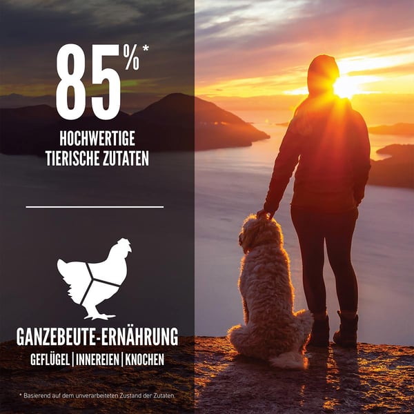 Krmivo ORIJEN tvoří 42 % výživných bílkovin a jen 17 % uhlohydrátů a představuje pro starší psy všech plemen stravu, která splňuje jejich přirozené potřeby.