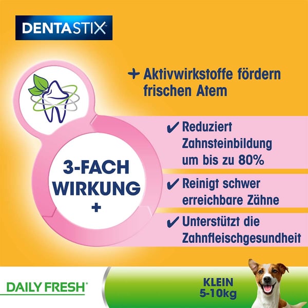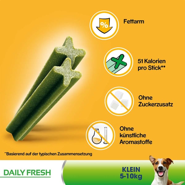 Velcí labužníci si přijdou s Pedigree DentaStix Daily Fresh na své. Jestliže chcete udržet chrup svého psa čistý a současně mu dopřát lahodný pamlsek, je Pedigree DentaStix Daily Fresh tou správnou volbou. Zuby jsou pro vašeho psa nejdůležitějším nástrojem. S bolestivými zuby může žvýkat jen omezeně. Proto byste měli zvláštní pozornost věnovat péči o zuby vašeho miláčka. Tento pamlsek pro psy může mít pozitivní vliv na zdraví zubů. Pamlsek je vhodný pro psy ve všech fázích života.