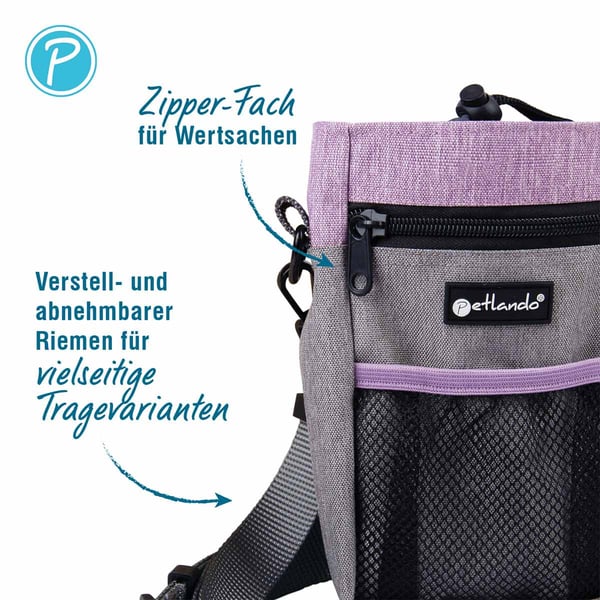Petlando Everest Snackbag přesvědčuje promyšlenými detaily, jako je extra vnitřní kapsa, která usnadňuje čištění, a integrovaný zásobník na sáčky na exkrementy, který vám ušetří čas na cestách. Tak máte vše, co potřebujete pro svého psa, rychle po ruce. Kapsa na zip nabízí další prostor pro vaše cennosti, takže se můžete plně soustředit na svou procházku.