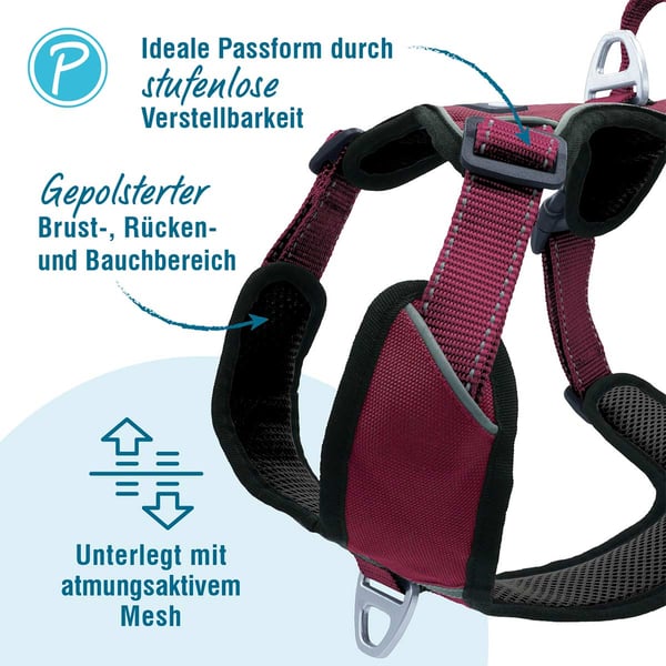 Plynulá nastavitelnost na popruzích krku, hrudníku a břicha Petlando Outdoor Geschirru zaručuje ideální padnutí pro vašeho psa. Ať už je váš pes malý nebo velký, Geschirr se dá individuálně přizpůsobit a zajišťuje perfektní usazení. Možnost připevnění ID štítku a značky poskytuje dodatečnou bezpečnost a činí Geschirr nepostradatelným společníkem pro vašeho psa.